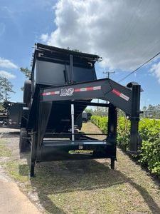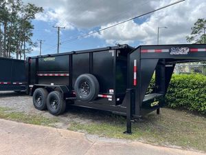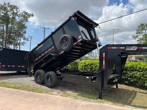 The 7x14 Gooseneck High Side 14k dump trailer is built for heavy-duty jobs that demand stability, capacity, and performance. Equipped with dual 7000 lb axles and rated for a 14000 lb GVWR, this trailer is ready to handle serious loads across construction sites, landscaping jobs, and roofing tear-offs. It features a 3 stage telescopic hydraulic cylinder for efficient and controlled dumping, along with a rugged multi-leaf spring suspension for smooth towing over rough terrain. With 14 cubic yards of hauling capacity, equivalent to around 60 roofing squares, it's perfect for large volume loads. The gooseneck design offers greater stability and weight distribution, making it ideal for longer hauls or when pulling with a heavy-duty truck. The heavy duty gate and rear slide in 7 ft ramps make loading and unloading equipment or debris quick and efficient.Constructed on a robust 8' channel frame with 3.5" channel floor cross members spaced 12" on center, and finished with 10 gauge steel floors and walls, this trailer is built for long-term use under tough conditions. It includes a 2 5/16 adjustable ball coupler and dual 10,000 lb spring loaded jacks for secure and easy hitching. An 18 amp battery charger ensures your hydraulic system stays fully powered, so you're always ready to dump when the job is done.