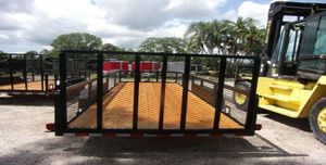 Built for everyday hauling and general purpose utility work, this 7x20 steel utility trailer with 2 ft mesh sides offers a practical balance of capacity, durability, and ease of use. Dual 3,500 lb axles provide a 7,000 lb GVWR, supported by a multi leaf spring suspension for stable towing with equipment, landscaping materials, or bulk loads. The 2 inch tube rail and mesh sides help secure cargo while maintaining visibility and airflow, making it ideal for residential, commercial, and light contractor use. Standard features include electric brakes, LED lighting, radial tires, four D rings for tie downs, and a spare tire mount, delivering a straightforward and reliable utility trailer setup. Comparable to Triple Crown, Big Tex, Down 2 Earth, and Trailers Plus.