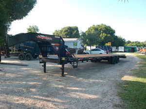 Built as a practical and budget focused hauling solution, this 8.5x40 Gooseneck Flatbed is designed for dependable everyday work. It features dual 10,000 lb axles paired with a multi leaf spring suspension to provide stable towing and solid load control under heavier weights. The deck includes a rub rail and stake pockets for flexible tie down options, making it easy to secure equipment, materials, or palletized loads. Dual 10K spring loaded jacks offer strong front support during hookup and staging. This economy flatbed focuses on core strength and usability without unnecessary extras. Comparable to Big Tex, Texas Pride, PJ, Maxx D, and Load Trail.