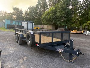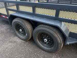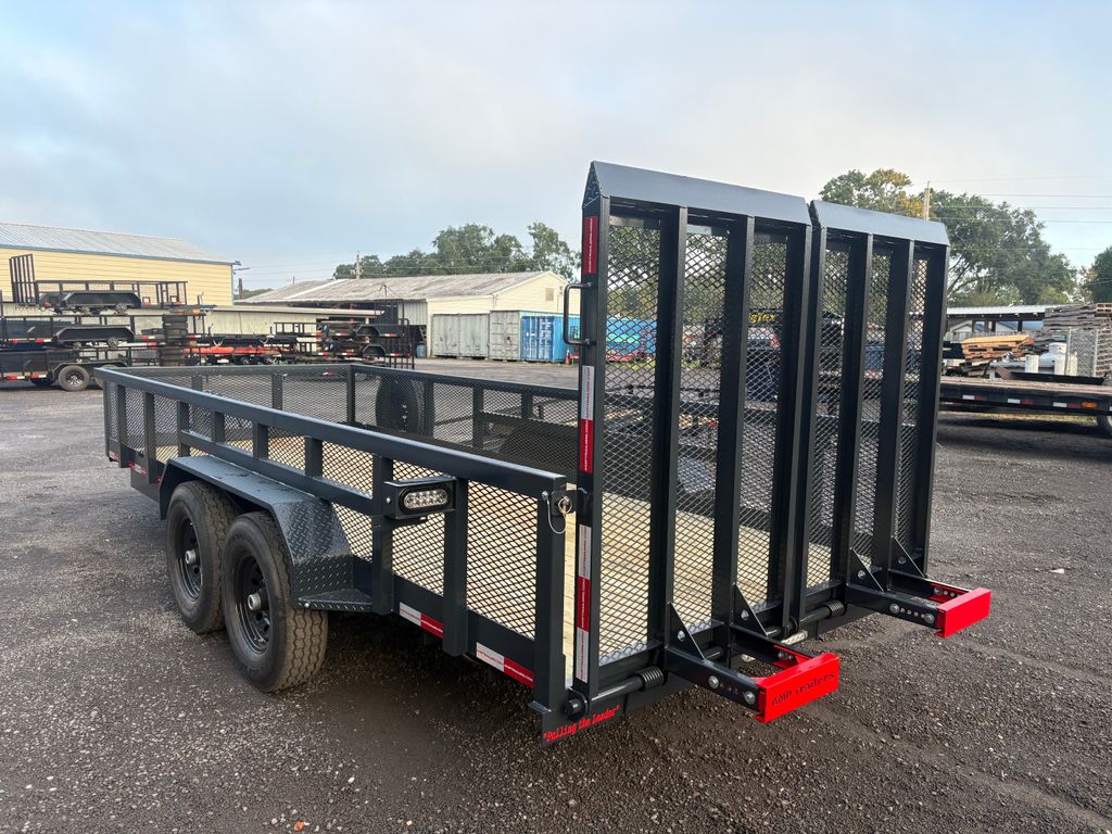 Built for heavy-duty performance, this 7x20 steel utility trailer is equipped with tandem 7,000 lb axles and a 14,000 lb GVWR, making it ideal for hauling equipment, landscaping materials, ATVs, or commercial loads. The 2' mesh sides add strength and containment, while the tube rail and 14-ply tires provide durability and stability on the road. A heavy-duty split gate ensures reliable loading and unloading, supported by a 10k spring-loaded jack. With 8 D-rings for secure tie-downs, this utility trailer is comparable to Maxx D, Anderson, Big Tex, Triple Crown, and Sure Trac models—built to handle tough jobs with long-lasting dependability.