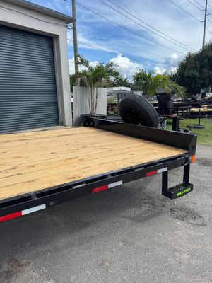 Built for strength and efficiency, this Load Trail 8.5x24 Bumper Pull Flatbed with a 5' self-clean dovetail and spring-assisted mega ramps offers a 14,000 lb GVWR on dual 7,000 lb axles. Comparable to Big Tex, Texas Pride, PJ, and Maxx D, it features an 8" I-beam frame, 16" crossmembers, multi-leaf spring suspension, and a 10k spring-loaded jack for reliable performance. The self-clean dovetail prevents buildup, while full-width mega ramps make loading equipment safe and simple. Additional features include stake body pockets, a rub rail, dual side steps, and a durable powder-coated finish for long-lasting protection.