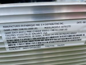 | Axles (# axles) capacity/each axle | (2) 3,500 lbs |