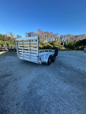 Built for larger loads and tougher jobs, this 6x12 Tandem Aluminum Utility Trailer delivers strength, capacity, and long-term durability. Comparable to Aluma, Sure-Trac, Alcom, and Black Rhino, it features dual 3,500 lb spring axles for a 5,000 lb GVWR supported by a double eye spring suspension for reliable performance. The all-aluminum build includes aluminum wheels, aluminum decking, and fluted aluminum tubing for lightweight corrosion resistance. A rear-removable 3-position ramp allows easy loading and unloading, while tie-down options—ratchet strap or single stud—secure your equipment or cargo. With added stability from tandem axles, this trailer is ideal for hauling ATVs, lawn equipment, small vehicles, or heavier supplies, offering the perfect balance of strength and lightweight maneuverability.