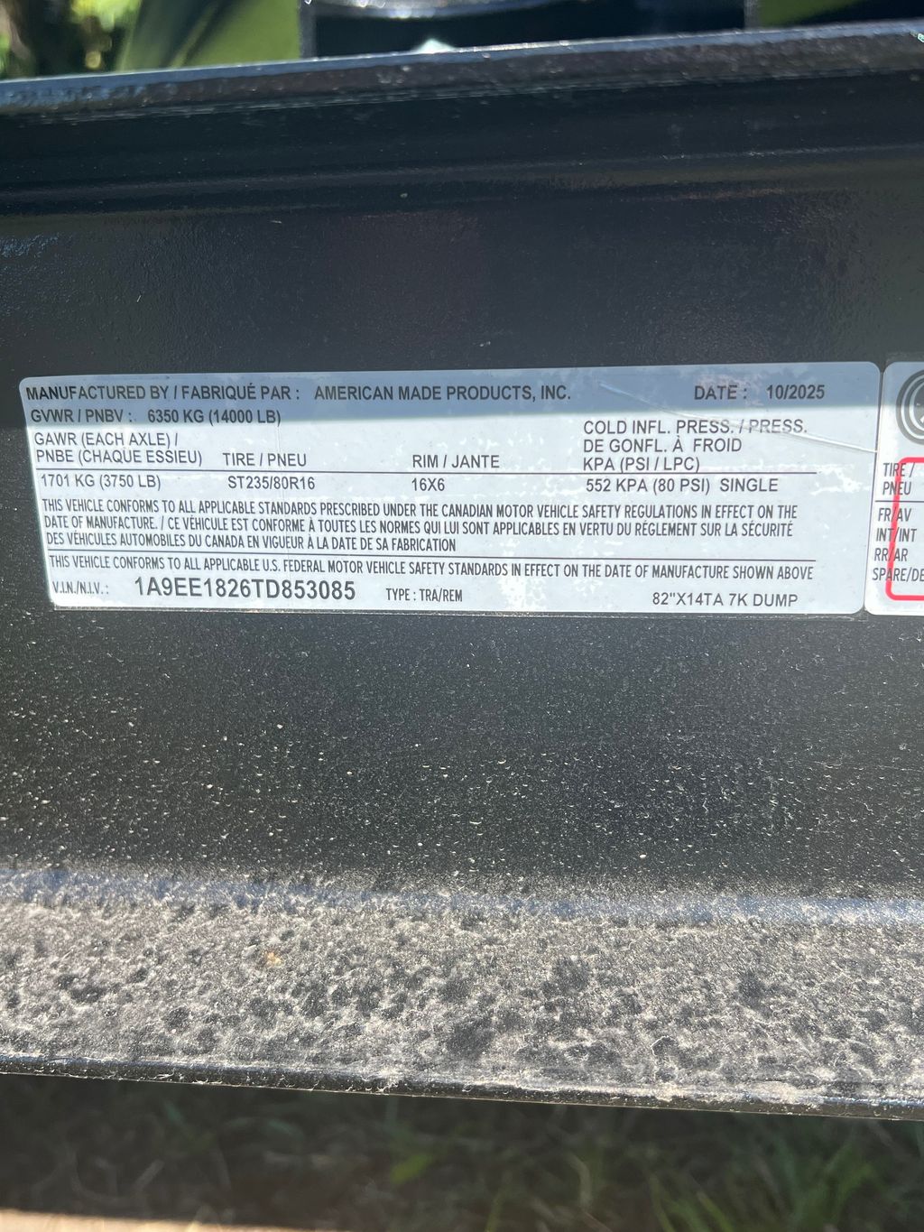| Axles (# axles) capacity/each axle | (2) 7,000 lbs |