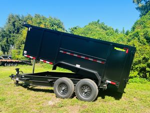 Engineered for tough jobs, this 14’ bumper pull dump trailer with 4ft walls delivers a 14-yard capacity and a 14,000 lb GVWR with tandem 7,000 lb axles. Built with multi-leaf spring suspension and reinforced 10-gauge steel walls and floor, it’s designed for maximum durability under heavy loads. A telescopic hydraulic lift provides smooth dumping power, while the manual tarp, slide-in ramps, 10k spring-loaded jack, and adjustable coupler give you control and convenience. Competing with Texas Pride, Big Tex, Rawmaxx, PJ, and Top Shelf trailers, this cost-efficient dump is ideal for contractors, landscapers, and construction crews who need reliable hauling for debris, gravel, soil, or bulk materials.