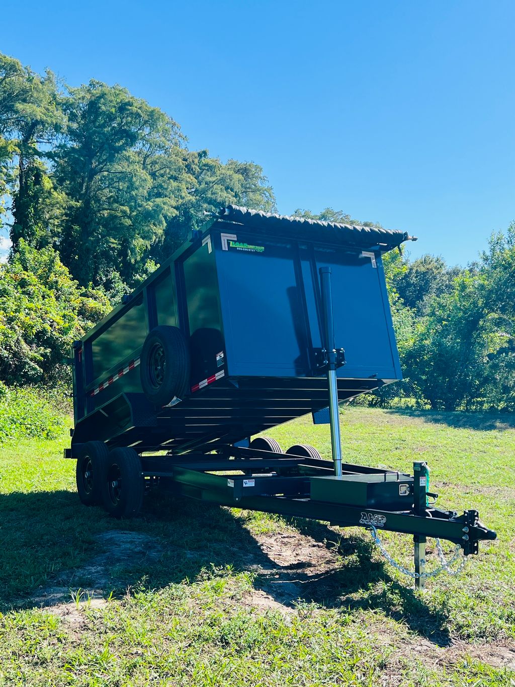 Engineered for professionals who demand strength and reliability, the 6x12 High Side 10k trailer features dual 5,200 lb axles delivering a combined 10,400 lb GVWR for handling heavy loads with confidence. Its durable multi-leaf spring suspension and reinforced 10-gauge steel floor and walls provide unmatched toughness on any job site. The 4-foot high sidewalls increase hauling capacity to an impressive 10 cubic yards, equivalent to about 46 roofing squares, making it perfect for large landscaping projects, construction debris, or bulk material transport. The 3-stage telescopic lifting system ensures smooth, powerful dumping performance for quick and efficient unloading. Designed with user convenience in mind, this trailer includes a heavy-duty gate and rear slide-in 6-foot ramps for safe loading and unloading of equipment. The adjustable 2-5/16 ball coupler combined with a 7,000 lb jack makes hitching easy and adaptable for various towing vehicles. An integrated 18-amp battery charger keeps the hydraulic system fully charged and ready to work whenever you are.