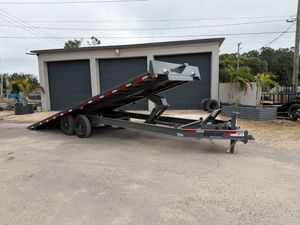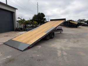 Built for serious hauling, this 8.5x24 Power Tilt Flatbed Trailer delivers 14,000 lbs. of GVWR backed by dual 7k axles and an 8” I-beam main frame. The hydraulic power tilt system makes loading and unloading equipment fast and hassle-free — no ramps needed. Outfitted with LED lighting, stake body pockets, an adjustable coupler, and rub rail, this trailer is ideal for heavy-duty use across construction, landscaping, and commercial hauling. Comparable to Horizon, PJ, Diamond C, Big Tex, Load Trail, and Ironbull.