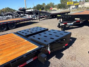Built to handle oversized loads and heavy machinery, this 7x24 Equipment Trailer with Mega Ramps is engineered for serious work. Comparable to Load Trail, Rawmaxx, PJ, Big Tex, Texas Pride, and Big Foot, it features dual 8,000 lb Dexter axles and a 16,000 lb GVWR supported by a multi-leaf spring suspension for maximum stability. The 8” channel frame and 3.5” channel crossmembers on 16” centers provide unmatched strength, while 14-ply tires deliver dependable performance under heavy loads. A multipurpose dovetail with Mega Ramps makes loading skid steers, tractors, or vehicles fast and efficient, while stake body pockets and a rub rail add versatile tie-down options. The integrated winch plate further enhances functionality, giving you the ability to pull and secure equipment with ease. Designed for contractors, equipment haulers, and construction crews, this 7x24 trailer combines capacity, durability, and convenience in one rugged package.