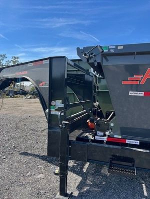 Engineered for versatility and strength, this 7x14 Gooseneck Roll-Off Frame Trailer is equipped with dual 7,000 lb axles and a 14,000 lb GVWR—ideal for handling roll-off dumpster bins or interchangeable flatbeds. The engineered gooseneck I-beam frame delivers exceptional structural integrity, while the powder-coated finish offers lasting protection against the elements. A multi-leaf spring suspension ensures stable towing, and dual 10k spring-loaded jacks provide reliable support during loading and unloading. Built for contractors, waste management, and material transport operations that demand durability and flexibility.