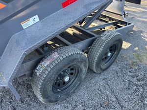 Compact and powerful, this 5x10 bumper pull dump trailer is built for contractors, landscapers, and property owners who need serious hauling ability in a small footprint. Equipped with tandem 5,200 lb axles and a 10,000 lb GVWR, it’s ready to move gravel, mulch, dirt, debris, or small equipment with ease while staying maneuverable on tight jobsites. A reinforced 5" C-channel frame and 10-gauge steel floor deliver long-lasting strength, while 32" tall walls provide a 5-yard capacity for added volume. The heavy-duty scissor lift ensures fast, reliable dumping, and slide-in ramps make it easy to load compact machinery. Comparable to Texas Pride, Big Tex, Rawmaxx, PJ, and Top Shelf, this trailer combines durability, function, and versatility with multi-leaf spring suspension for dependable performance on every haul.