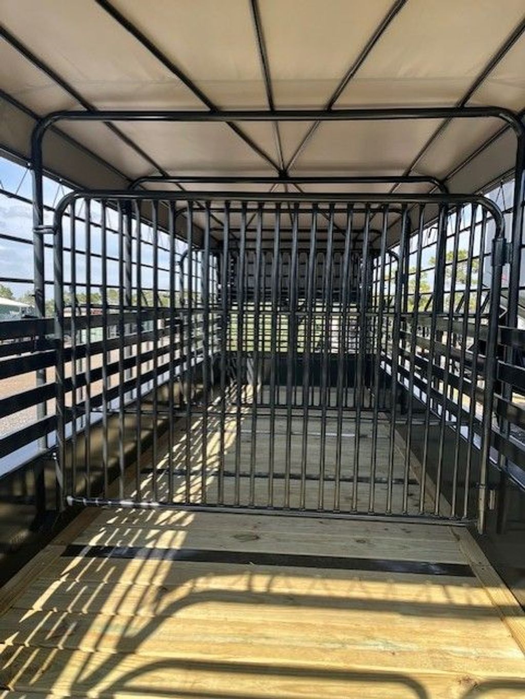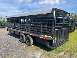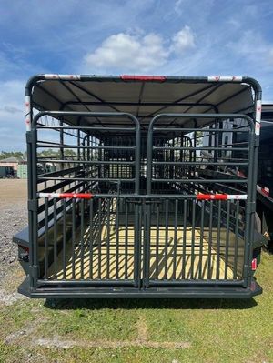 Built to handle the demands of everyday ranch work, this 6.5 x 24 Gooseneck Livestock Trailer offers a durable and functional design for hauling cattle, horses, and other livestock safely. Equipped with tandem 7,000 lb axles for a 14,000 lb GVWR and a multi leaf spring suspension, it delivers a stable and reliable ride even under heavy loads. The trailer features a full escape door for easy access, interior cut gates for livestock separation, and split rear gates for flexible loading and unloading. A sturdy canvas top provides shade and weather protection, keeping animals comfortable during transport. Designed for strength, simplicity, and dependability, this trailer is an excellent choice for farms, ranches, and livestock haulers who need a trailer that performs day after day.