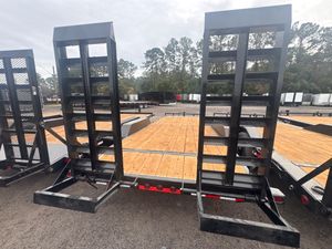 Designed for reliable heavy-duty hauling, this 7 x 20 Equipment Trailer with fold-up ramps is built for contractors, equipment transport, and commercial users. Comparable to Sure Trac, Rawmaxx, PJ, Big Tex, Texas Pride, and Big Foot, it comes equipped with dual 7,000 lb Dexter axles for a 14,000 lb GVWR and a dependable multi-leaf spring suspension for stable towing under load. A 10k spring-loaded jack, stake pockets, and rub rail provide secure tie-down points and easy loading, while radial tires with LED lighting ensure safe road visibility and durability. A spare tire mount is included for added preparedness, making this trailer a reliable choice for daily professional use.