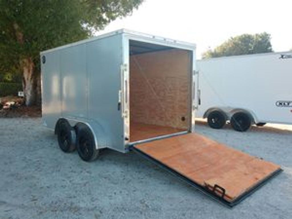 Built for reliable daily use, this 7 x 12 enclosed cargo trailer delivers a 3,500 lb GVWR with a single 3,500 lb axle. Comparable to Rock Solid Cargo, Haulmark, Continental Cargo, Interstate Trailers, Diamond Cargo, and Snapper Trailers, it features durable .080 PolyCor sides, a semi-screwless exterior, and a v-nose with rock guard for added protection and towing efficiency. The RV-style side door with bar lock provides secure entry, while LED interior and exterior lighting improves visibility during loading and travel. Radial tires and a multi-leaf spring suspension ensure a smooth tow, and 16" on-center floor and wall crossmembers deliver dependable strength over time. With a triple-tube tongue for enhanced stability, this trailer is ideal for tools, motorcycles, landscaping equipment, small business fleets, and contractor-grade hauling.