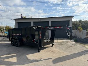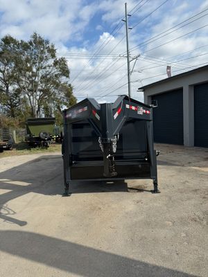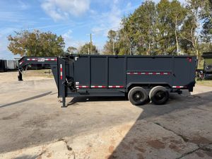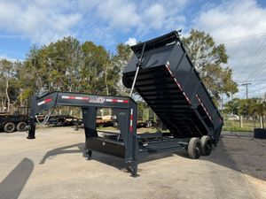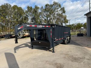 Built for commercial-grade hauling, this 7 x 16 Gooseneck Dump Trailer with 4 ft walls is engineered for maximum strength and control on demanding jobs. Comparable to Texas Pride, Big Tex, Rawmaxx, PJ, and Top Shelf, it’s equipped with dual 8,000 lb axles for a 16,000 lb GVWR and a dependable multi leaf suspension, giving it the muscle to handle heavy materials like gravel, dirt, or concrete debris with ease. A 3 stage telescopic hydraulic lift delivers powerful, stable dump action, while the 7 gauge steel floor and 10 gauge walls provide long lasting durability. Built with 12" on center floor cross members, a 10K spring loaded jack, and an adjustable coupler, this trailer is designed for stability and reliability under heavy loads. Added features include a tarp kit, 7' slide in loading ramps, and 17.5" 16 ply tires for superior strength and towing performance. A true heavy duty gooseneck built to perform day after day.