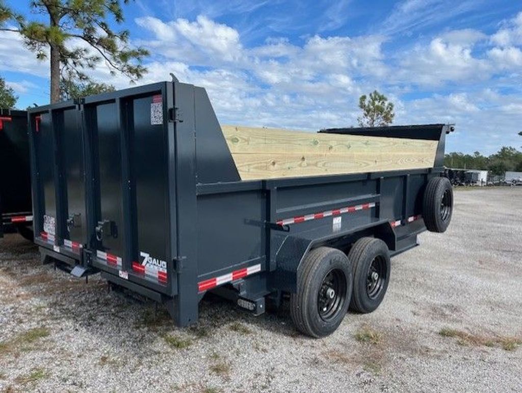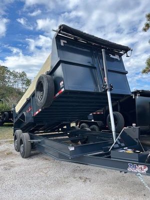 Built for serious hauling, this 7 x 16 Bumper Pull Dump Trailer with 2 ft buildable sides delivers extreme strength and reliability for contractors and heavy equipment users. Comparable to Texas Pride, Big Tex, Rawmaxx, PJ, and Top Shelf, it’s equipped with dual 8,000 lb axles for a 16,000 lb GVWR and a durable multi leaf suspension system for steady, controlled towing under load. A 3 stage telescopic hydraulic lift provides superior dumping power, while the 7 gauge steel floor and 10 gauge walls ensure long lasting durability in demanding conditions. Designed with 12" on center floor cross members, a 10K spring loaded jack, and an adjustable coupler, it’s built to handle heavy materials with confidence. Additional features include a tarp kit, 7' slide in ramps, and heavy duty 17.5" tires with 16 ply construction. This trailer is a true heavy duty performer, combining strength, efficiency, and functionality for professional use.