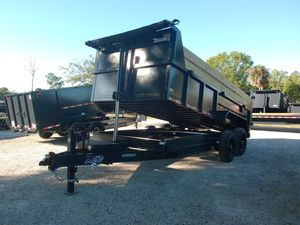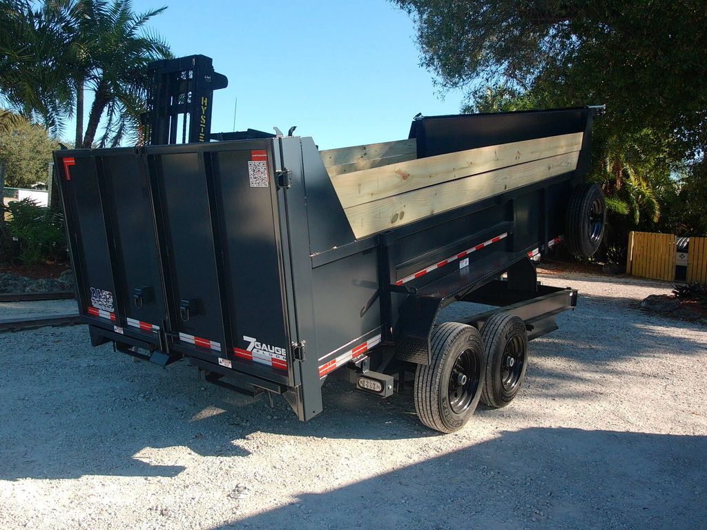 Built for serious hauling, this 7 x 16 Bumper Pull Dump Trailer with 2 ft buildable sides delivers extreme strength and reliability for contractors and heavy equipment users. Comparable to Texas Pride, Big Tex, Rawmaxx, PJ, and Top Shelf, it’s equipped with dual 8,000 lb axles for a 16,000 lb GVWR and a durable multi leaf suspension system for steady, controlled towing under load. A 3 stage telescopic hydraulic lift provides superior dumping power, while the 7 gauge steel floor and 10 gauge walls ensure long lasting durability in demanding conditions. Designed with 12" on center floor cross members, a 10K spring loaded jack, and an adjustable coupler, it’s built to handle heavy materials with confidence. Additional features include a tarp kit, 7' slide in ramps, and heavy duty 17.5" tires with 16 ply construction. This trailer is a true heavy duty performer, combining strength, efficiency, and functionality for professional use.