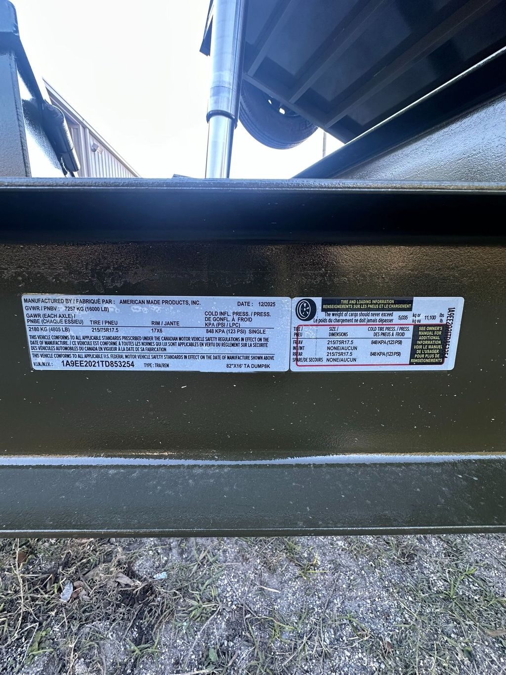 | Axles (# axles) capacity/each axle | (2) 8,000 lbs |