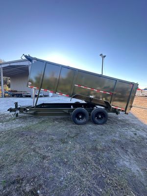 Built for demanding commercial work, this 7 x 16 Bumper Pull Dump Trailer with 4 ft walls is engineered for high-capacity hauling, jobsite abuse, and long-term reliability. Comparable to Texas Pride, Big Tex, Rawmaxx, PJ, and Top Shelf, it’s equipped with dual 8,000 lb axles supporting a 16,000 lb GVWR and a multi-leaf suspension system for smooth, controlled towing under heavy load. The 3-stage telescopic hydraulic lift delivers exceptional dumping force, while the 7-gauge steel floor and 10-gauge walls provide durability fit for gravel, debris, and machine transport. With 12" on-center floor crossmembers, a 10K spring-loaded jack, and an adjustable coupler, it’s built to withstand serious daily use. Additional features include a tarp system, 7' slide-in ramps, and 17.5" wheels with 16-ply tires for enhanced stability and longevity. This model is built for contractors, rental fleets, and professionals requiring strength, efficiency, and maximum hauling performance.