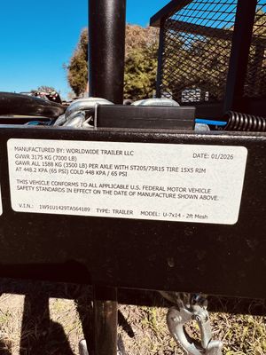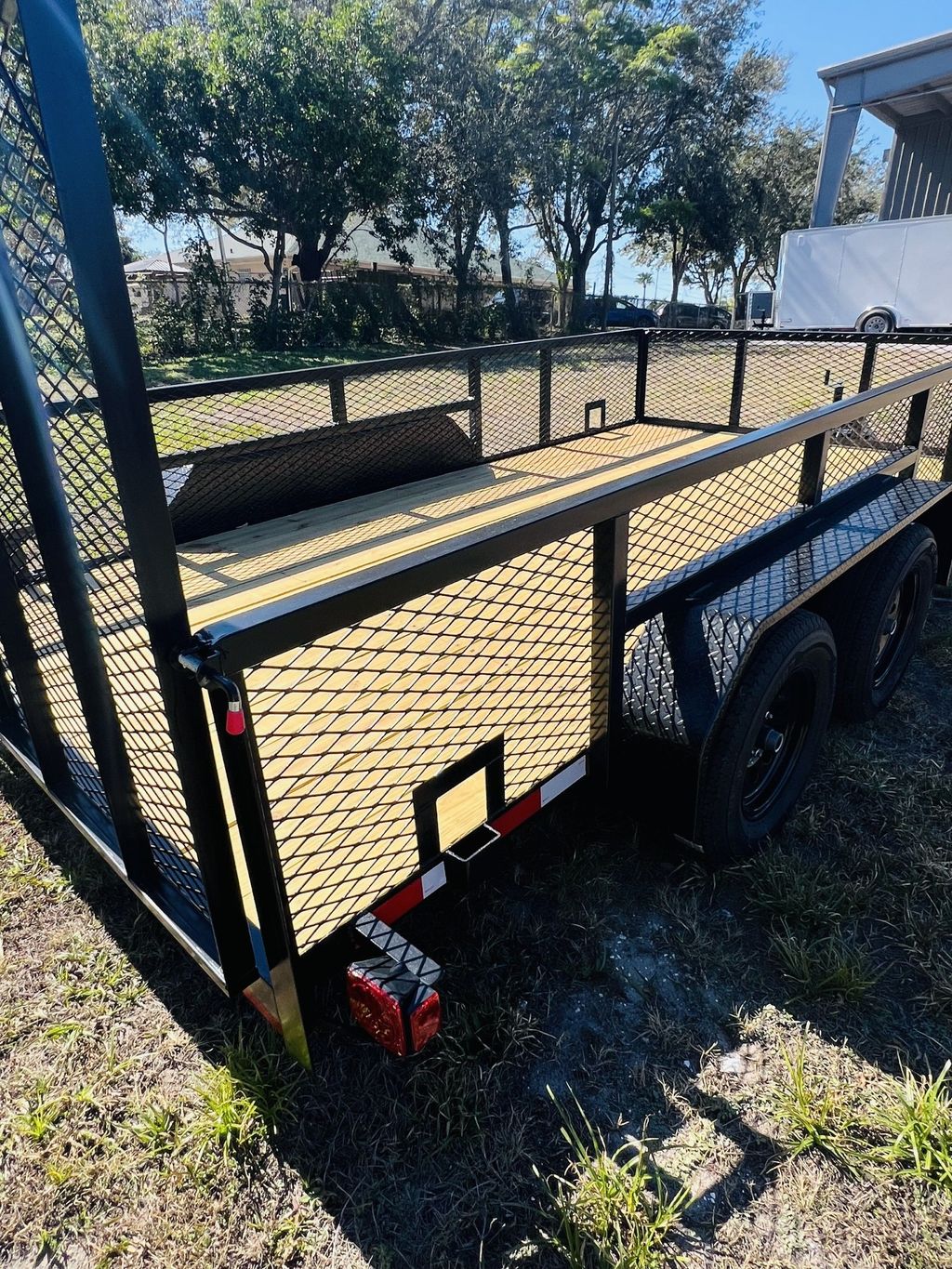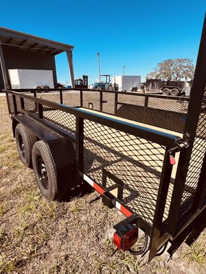 Rugged and versatile, this 7x14 Steel Utility Trailer with 2' mesh sides delivers a 7,000 lb GVWR on dual 3,500 lb axles. Comparable to Triple Crown, Big Tex, Down 2 Earth, and Trailers Plus, it’s built with a 2" tube rail, multi-leaf spring suspension, and electric brakes for dependable performance. Radial tires and LED lights provide safety on the road, while 4 D-rings and a spare tire mount ensure secure cargo management. Ideal for landscaping equipment, ATVs, lawn mowers, fencing, and bulky material loads, this trailer is a reliable choice for both commercial and recreational use.