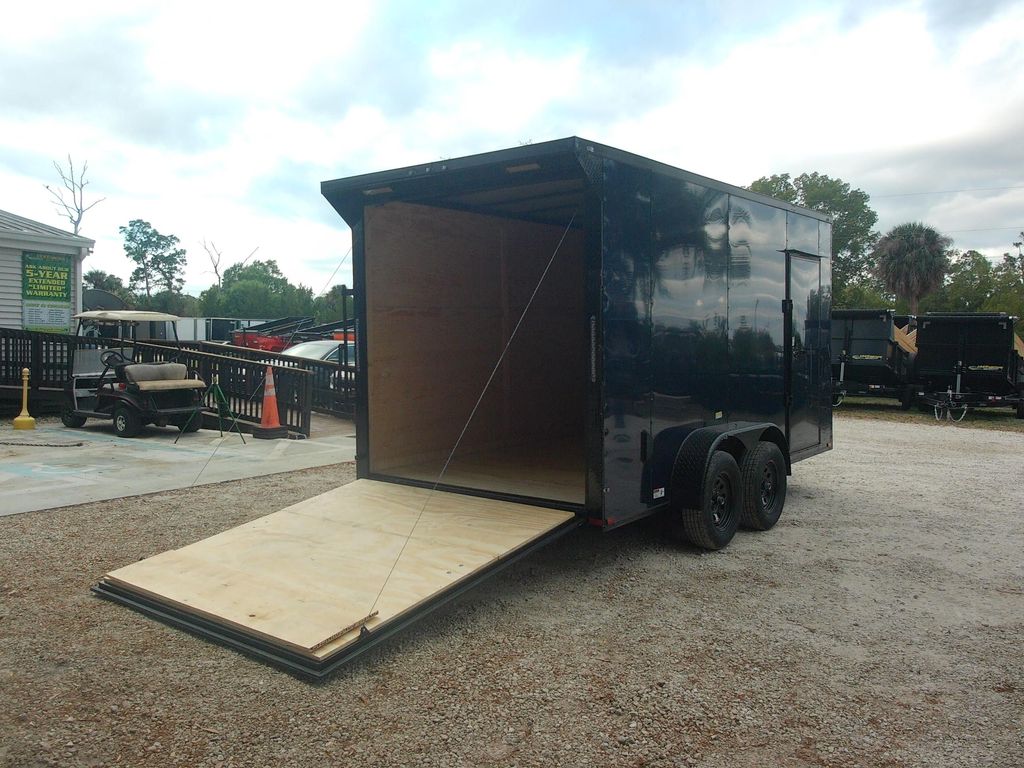 Built for reliable everyday hauling, this 7 x 14 Enclosed Cargo Trailer offers a balanced combination of durability, style, and towing stability. Comparable to Rock Solid Cargo, Haulmark, Continental Cargo, Interstate Trailers, Diamond Cargo, and Snapper Trailers, it features dual 3,500 lb axles for a 7,000 lb GVWR supported by a smooth multi leaf suspension. Heavy duty .080 PolyCore sides and a semi screwless exterior provide long lasting strength and a clean, modern appearance. The slanted V nose improves aerodynamics, while the RV style side door with bar lock ensures secure and convenient access. Additional upgrades include LED interior and exterior lighting, radial tires, a rear wing with integrated LED lights, blackout package, and 16" on center floor and wall cross members for added structural support. Designed for tools, equipment, and contractor use, this enclosed trailer delivers dependable performance with a sharp, professional look.