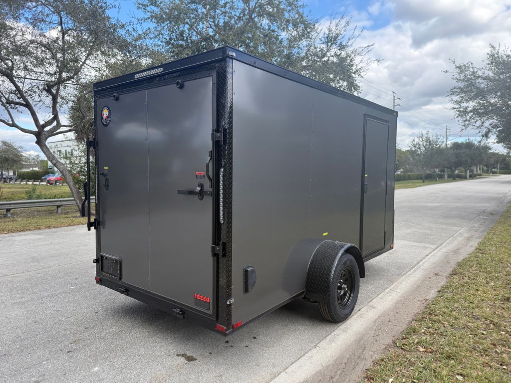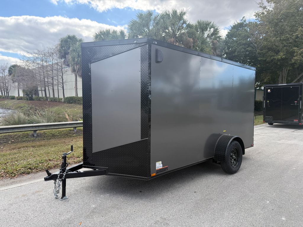 Designed for dependable everyday use, the 6x12 Enclosed Cargo Trailer provides a balance of strength, security, and storage capacity in a compact footprint. Comparable to Rock Solid Cargo, Haulmark, Continental Cargo, Interstate, Diamond Cargo, Snapper, Covered Wagon, and Spartan Trailer, it’s built on a single 3,500 lb axle with a 2,990 lb GVWR. Its heavy-duty .080 PolyCore sides and semi-screwless finish deliver both durability and a professional appearance. The RV-style side door with bar lock offers secure entry, while LED lighting and radial tires enhance safety and performance. A V-nose with rock guard boosts towing efficiency and protects the trailer exterior. Constructed with 24” on-center floor and wall crossmembers for added durability, this 6x12 single axle trailer is ideal for hauling tools, supplies, or light equipment for contractors, landscapers, and small businesses.