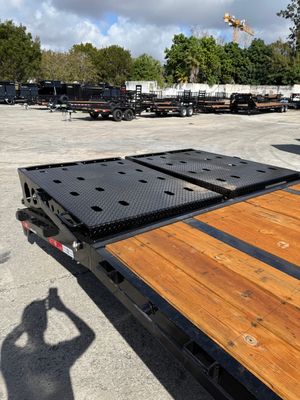 "Built for serious work and long-term reliability, this 8.5x32 Gooseneck Flatbed Trailer is equipped with two 10,000 lb axles and a 22,000 lb GVWR—making it ideal for transporting heavy equipment, machinery, and oversized materials. Its engineered frame includes a torque tube and under-frame bridge for enhanced structural strength and load stability. A durable powder-coated finish offers lasting protection, while the Hutch suspension system provides a smooth, stable ride under pressure. Spring-assisted mega ramps make loading and unloading efficient and safe, and dual 10k spring-loaded jacks deliver solid support when stationary. This is a heavy-duty trailer built to meet the demands of professional haulers.