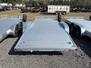 Built for heavier vehicles and demanding transport needs, this 7 x 18 Aluminum Car Hauler comes equipped with dual 6,000 lb Dexter torsion axles and a 9,990 lb GVWR supported by a Torflex suspension system for smooth, controlled towing. Its all-aluminum design keeps weight down without sacrificing structural integrity. Features include aluminum wheels, 6' ramps with hidden protective storage for rear or side loading, integrated tie down track built into the frame rails, a 3' beaver tail for improved loading clearance, and a 2" x 7" A-frame tongue for added strength. With a 3 year structural warranty and 5 year axle warranty, this trailer offers premium durability comparable to Aluma, Alcom, Black Rhino, and Featherlite.