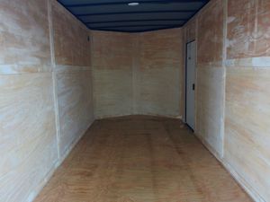 Designed for a bold appearance with proven durability, this 7 x 14 Enclosed Cargo Trailer with blackout package combines style with heavy duty construction. It features a single 3,500 lb axle rated at 7,000 lb GVWR and a multi leaf suspension for consistent towing performance. The .080 PolyCore exterior panels are finished with a semi screwless design and blackout trim for a clean, modern look. Functional upgrades include an RV style side door with bar lock, LED interior and exterior lighting, radial tires, and a protective V nose with rock guard. Built with 16 inch on center floor and wall cross members and a triple tube tongue, this trailer is well suited for contractors and secure cargo transport.