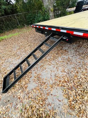 Engineered for strength and reliability, the 8.5x20 Bumper Pull Flatbed Trailer is designed for contractors, equipment haulers, and businesses that demand performance. Comparable to Big Tex, Texas Pride, PJ, and Load Trail, it’s built with dual 7,000 lb axles for a 14,000 lb GVWR, giving it the capacity to handle heavy-duty loads with confidence. A full wrap tongue and rub rail with stake pockets provide durability and flexibility for securing cargo, while the adjustable coupler and 10k spring-loaded jack add convenience and stability. Slide-in loading ramps make equipment access quick and easy, while LED lights and radial tires ensure dependable performance on the road. Reinforced by multi-leaf spring suspension, this trailer is built for smooth towing even under heavy weight. Whether hauling construction equipment, machinery, or bulk materials, the 8.5x20 flatbed delivers the strength and versatility needed for tough jobs.