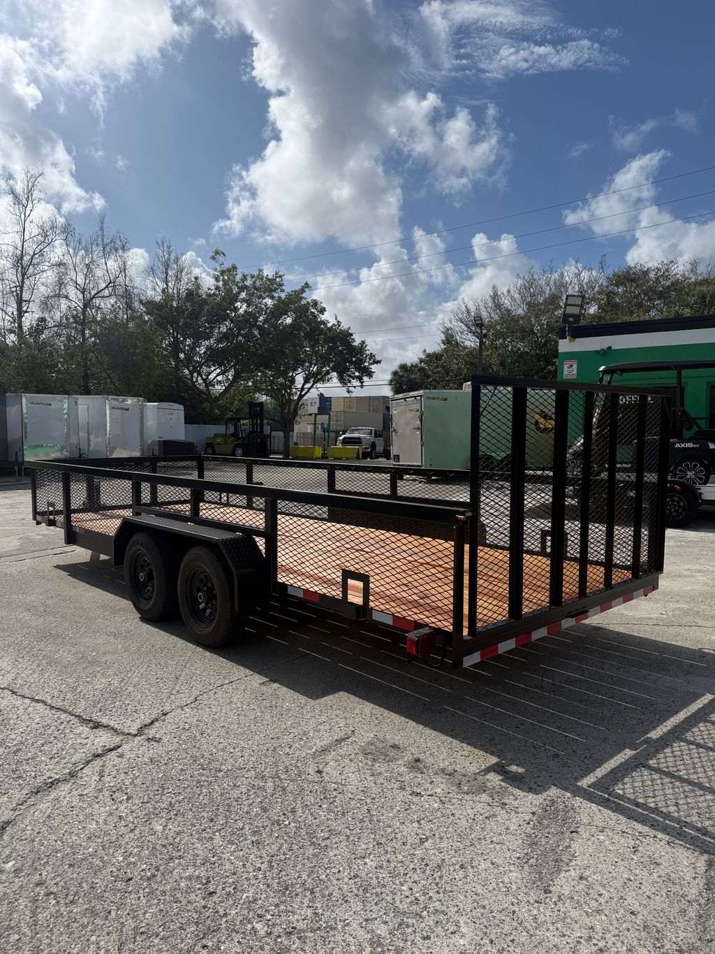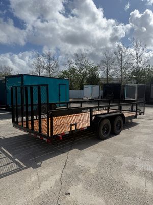 Built for heavier hauling and increased payload capacity, this 7x20 steel utility trailer with 2 ft mesh sides is designed for demanding residential, commercial, and contractor use. Dual 5,200 lb axles deliver a 9,990 lb GVWR, paired with a multi leaf spring suspension for stable, confident towing under heavier loads. The 2 inch tube rail and mesh sides provide added cargo security while keeping the deck versatile for equipment, materials, and bulk hauling. Standard features include electric brakes, LED lighting, radial tires, four D rings for tie down points, and a spare tire mount, making this a durable and work ready utility trailer option. Comparable to Triple Crown, Big Tex, Down 2 Earth, and Trailers Plus.