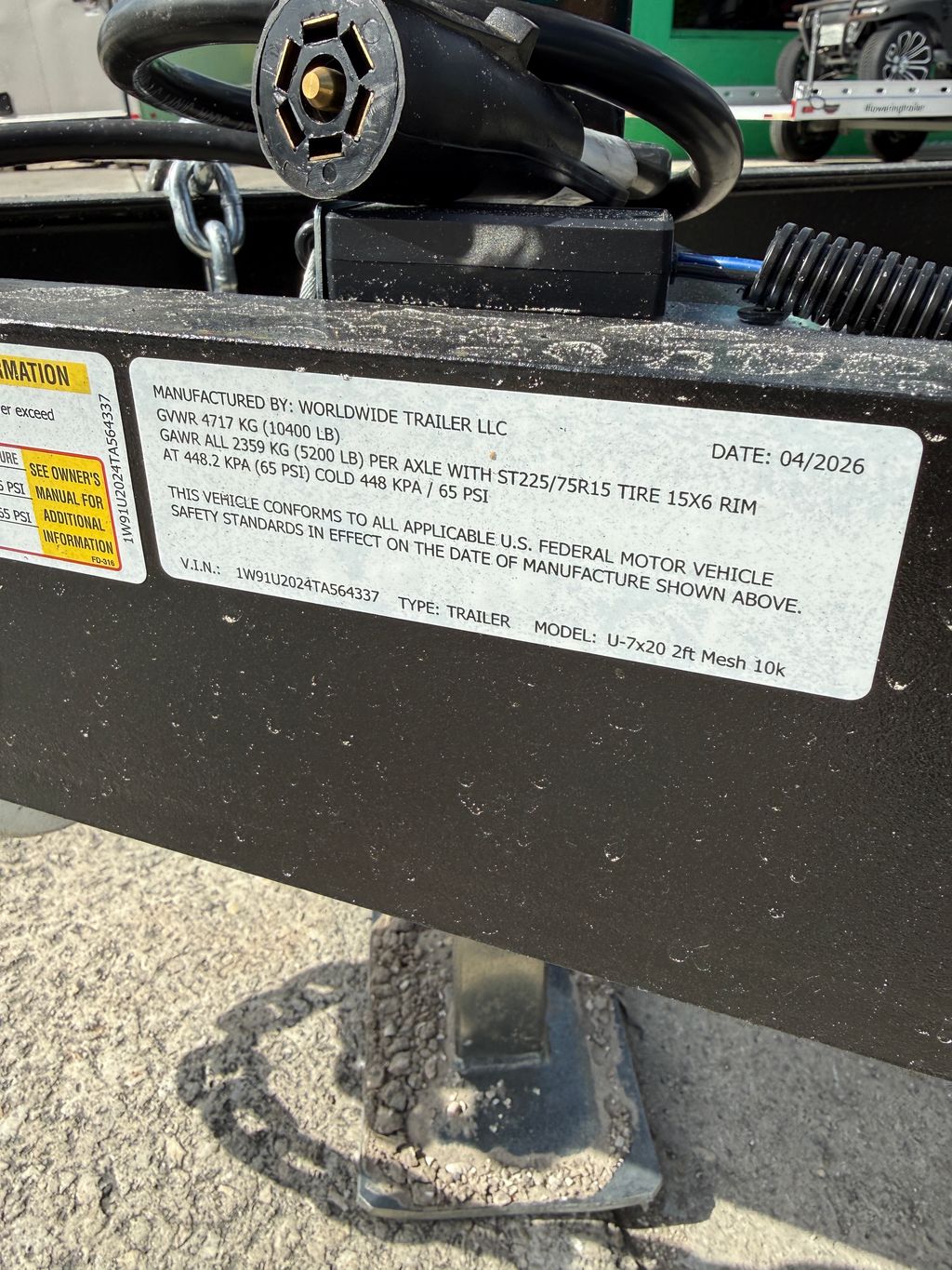 | Axles (# axles) capacity/each axle | (2) 5,200 lbs |