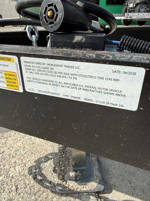 New 2026 Worldwide 7 x 20 2' Mesh Utility Trailer 10k GVWR