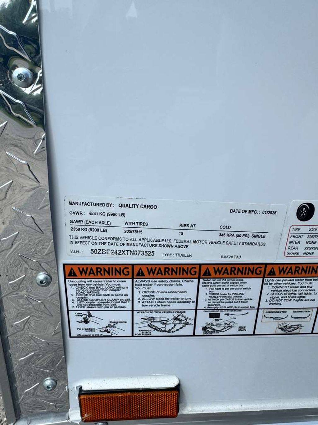 New 2026 Quality Cargo 8.5 x 24 Enclosed Trailer 10k GVWR