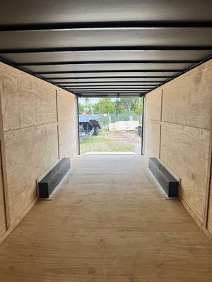 Built for contractors and businesses that need more space, this 8.5x20 Enclosed Cargo Trailer delivers exceptional hauling capacity and durability. Outfitted with dual 5,200 lb axles and a 10,000 lb GVWR, it’s perfect for transporting vehicles, landscaping equipment, or bulk cargo. Comparable to Rock Solid Cargo, Haulmark, Continental Cargo, Interstate, Diamond Cargo, and Snapper Trailers, it features .080 PolyCore sides for strength and dent resistance, plus a semi-screwless exterior for a professional look. The RV-style side door with bar lock ensures easy access, while LED interior and exterior lights provide excellent visibility. Radial tires, a protective V-nose, and a front rock guard add efficiency and stability when towing. With 16" on-center floor and wall crossmembers reinforced by multi-leaf spring suspension, this 8.5x20 enclosed trailer is built for long-term reliability under heavy use.