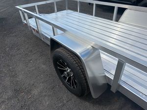 Lightweight and easy to tow, this 5 x 12 Aluminum Utility Trailer is built for everyday hauling while offering the corrosion resistance and durability of all aluminum construction. Equipped with a 3,500 lb torsion axle, it provides a smooth ride and dependable support for a variety of loads. The trailer features aluminum wheels, aluminum decking, and fluted aluminum tubing for strength without added weight. A removable three position rear ramp makes loading equipment quick and convenient, while ratchet strap or single stud tie down points help secure cargo during transport. Comparable to Aluma, Mission, Carry On, and Sure Trac.