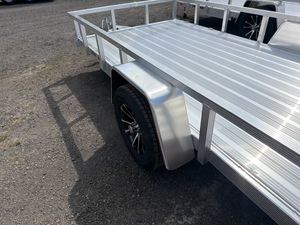 Lightweight and built for everyday hauling, this 6 x 12 Aluminum Utility Trailer combines durability with easy towing. Equipped with a 3,500 lb torsion axle, it provides a smooth ride and dependable load support for equipment, tools, and materials. The trailer features aluminum wheels, durable aluminum decking, and fluted aluminum tubing for added strength without unnecessary weight. A removable three position rear ramp and folding ramp design allow for quick and convenient loading, while the integrated tie down track helps keep cargo secure during transport. Comparable to Aluma, Mission, Carry On, and Sure Trac.