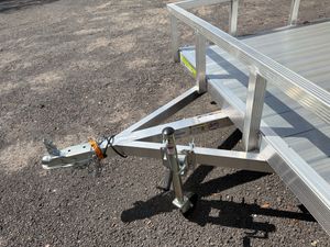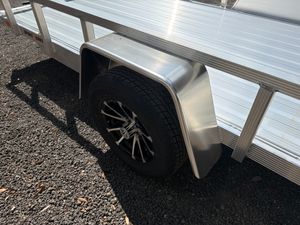 Lightweight and built for everyday hauling, this 6 x 12 Aluminum Utility Trailer combines durability with easy towing. Equipped with a 3,500 lb torsion axle, it provides a smooth ride and dependable load support for equipment, tools, and materials. The trailer features aluminum wheels, durable aluminum decking, and fluted aluminum tubing for added strength without unnecessary weight. A removable three position rear ramp and folding ramp design allow for quick and convenient loading, while the integrated tie down track helps keep cargo secure during transport. Comparable to Aluma, Mission, Carry On, and Sure Trac.