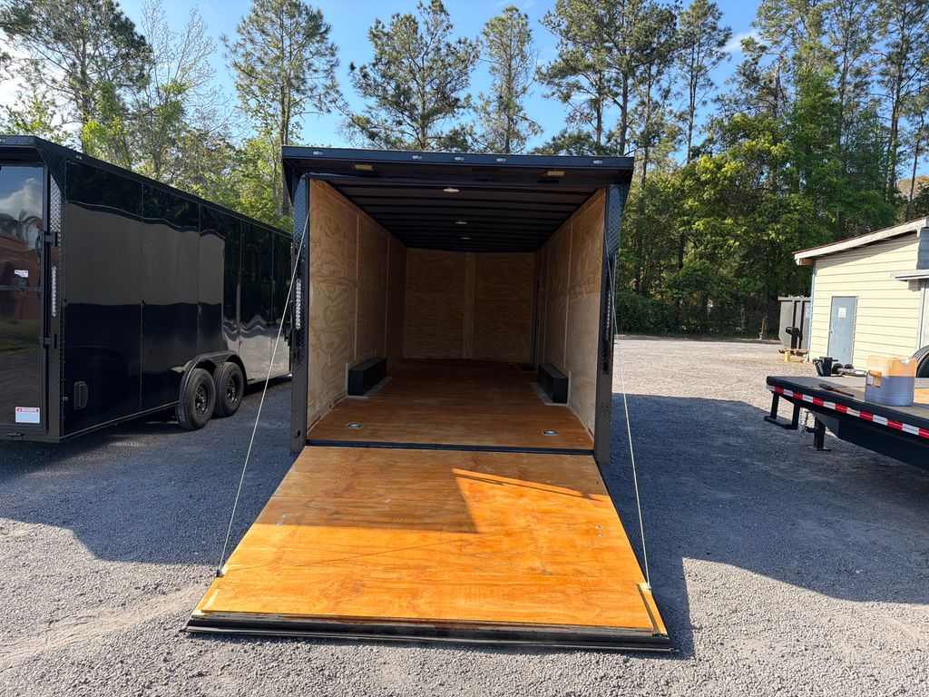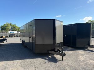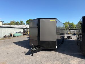 Built for reliable cargo hauling with added space and strength, this 8.5 x 24 Enclosed Trailer is designed to handle equipment, tools, and materials with ease. Equipped with dual 5,200 lb axles for a 9,990 lb GVWR and a multi leaf suspension system, it delivers smooth towing and dependable performance. The trailer features durable .080 polycore sides with a semi screwless exterior for a clean, modern look. Additional features include an RV style side door with bar lock, LED interior and exterior lighting, radial tires, a v nose design, and a rock guard for front protection. Built with 16" on center floor and wall cross members for added strength, along with a 60" triple tube extended tongue for improved towing stability. Finished with a blackout package and rear wing with lights for added style and visibility. Comparable to Rock Solid Cargo, Covered Wagon, Diamond Cargo, Quality Cargo, and Cynergy Cargo.